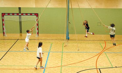 Sporthalle: mit Galerie und Spiegelwand (Slingtraining)
